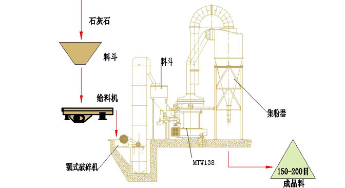該公司主要生產碳酸鈣粉,成品用于檸檬酸行業;從我司購入一套MTW138歐版磨成套設備。