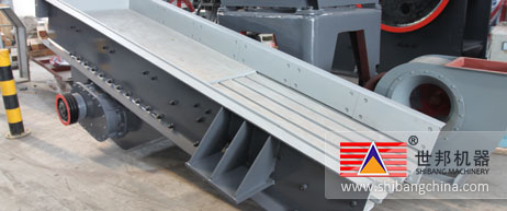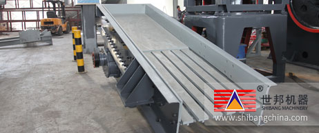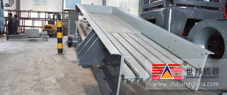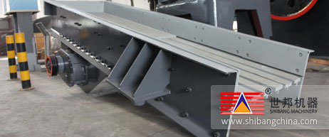 振(zhen)(zhen)動(dong)給(gei)料(liao)機(ji)是由給(gei)料(liao)槽體、激(ji)振(zhen)(zhen)器(qi)、彈簧支(zhi)座、傳動(dong)裝置(zhi)等組(zu)(zu)成。槽體振(zhen)(zhen)動(dong)給(gei)料(liao)的(de)振(zhen)(zhen)動(dong)源是激(ji)振(zhen)(zhen)器(qi),激(ji)振(zhen)(zhen)器(qi)是由兩根偏心軸(zhou)(zhou)(主(zhu)、被動(dong))和齒輪(lun)副組(zu)(zu)成,由電動(dong)機(ji)通過三角帶(dai)驅(qu)動(dong)主(zhu)動(dong)軸(zhou)(zhou),再(zai)由主(zhu)動(dong)軸(zhou)(zhou)上齒輪(lun)嚙合被動(dong)軸(zhou)(zhou)轉動(dong),主(zhu)、被動(dong)軸(zhou)(zhou)同時反向旋轉,使槽體振(zhen)(zhen)動(dong),使物(wu)(wu)料(liao)連續不斷(duan)流動(dong),達到(dao)輸送物(wu)(wu)料(liao)的(de)目的(de)。