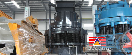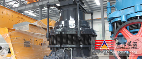 彈簧破(po)碎機工作時,電(dian)動(dong)機通過水平軸(zhou)和一對傘齒輪帶動(dong)偏心軸(zhou)套(tao)旋轉,破(po)碎圓錐(zhui)軸(zhou)心線在偏心軸(zhou)套(tao)的迫動(dong)下(xia)做旋擺運(yun)動(dong),使得(de)破(po)碎壁(bi)(bi)表面(mian)時而靠近又時而離開軋臼壁(bi)(bi)的表面(mian),從而使礦(kuang)石在破(po)碎腔(qiang)內不斷地受到擠壓和彎(wan)曲而被破(po)碎。